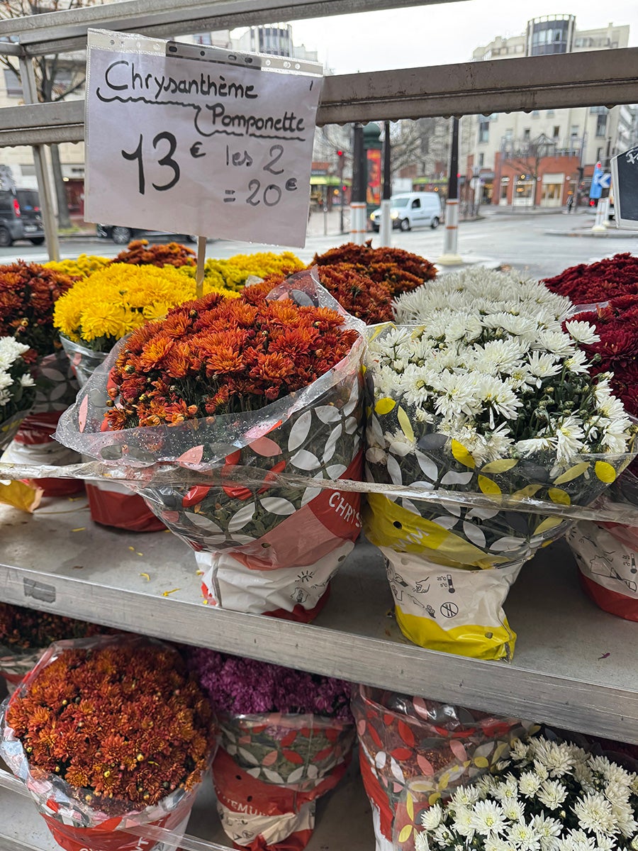 パリのお花屋さんも菊がいっぱい。