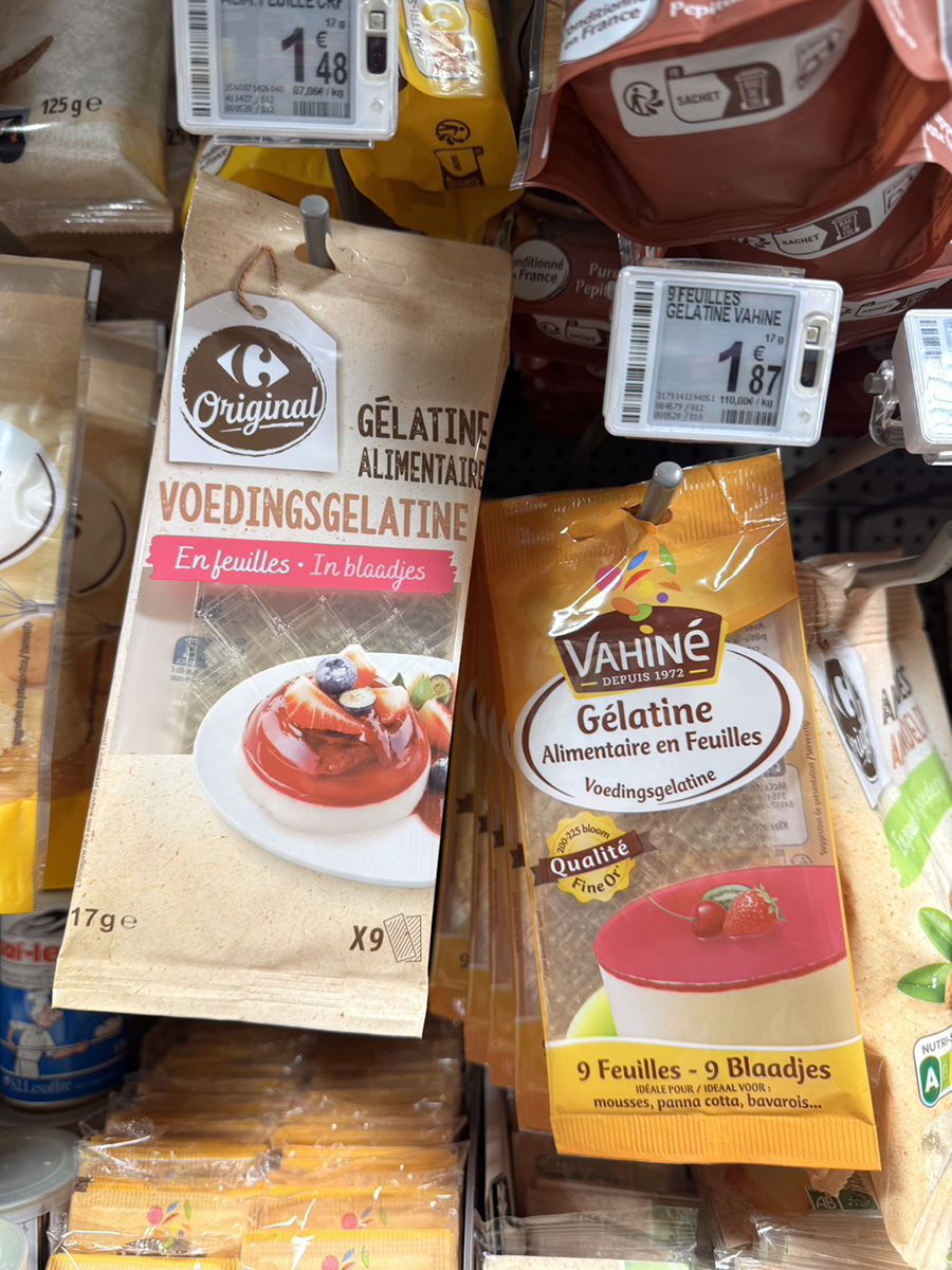 日本でゼラチンといえば、 パリッパリの板を冷たい水の中に入れて、 ドロりん、ブルりんってなる触感が